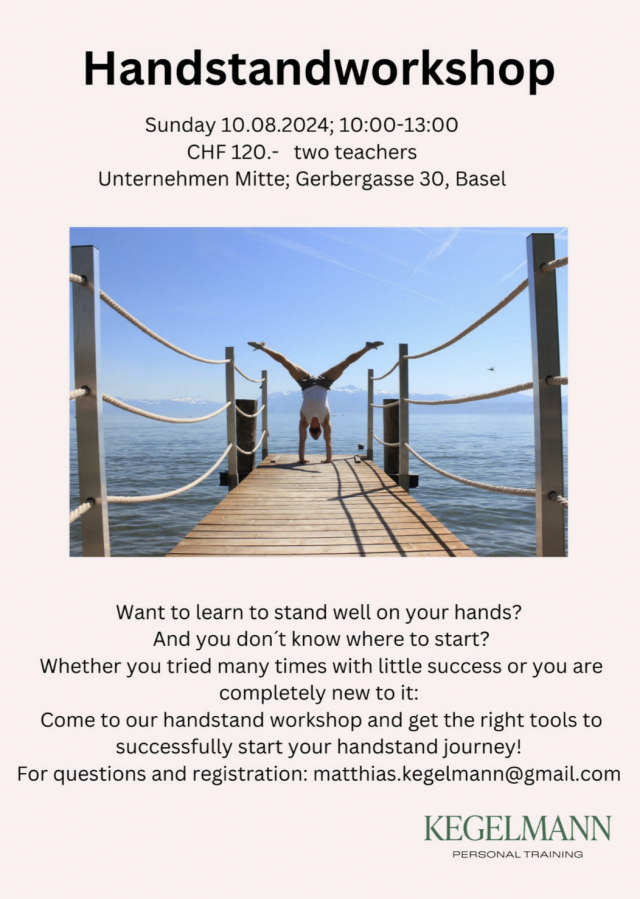 Willst du lernen auf deinen Händen zu stehen und weisst nicht, wo du starten sollst? Ob du es schon probiert hast und es noch nicht gut klappt oder ob Handstand ganz neu für dich ist: Komm zu unserem Handstand Workshop und starte deine Reise auf den Händen.
