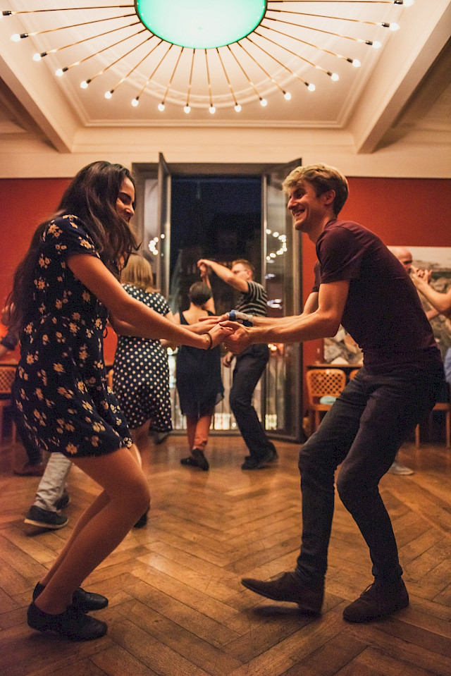 Wir tanzen im wunderschönen Salon des Unternehmen Mitte! Vor der Party gibt es einen Lindy Hop Crashkurs, damit wirklich alle mittanzen können. Du kannst mit oder ohne Partner*in teilnehmen.