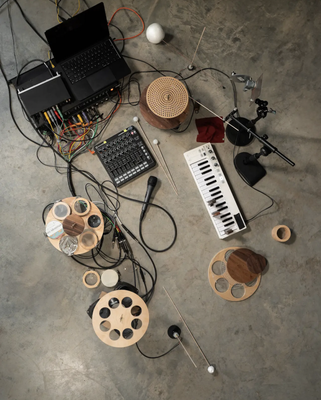 Tom Jacques’ artistic approach evolves between composition, improvisation, interpretation and the design of sound devices. His works are rooted in a variety of practices, including music, sound installation, lutherie, digital art, craft and visual arts. The fabrication of new devices is at the center of his compositional and improvisational approach.