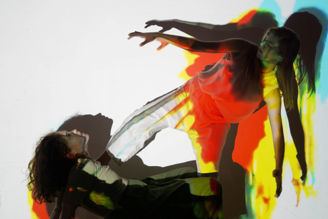 Farben, Körper und Lichtfetzen formen den leeren Raum.