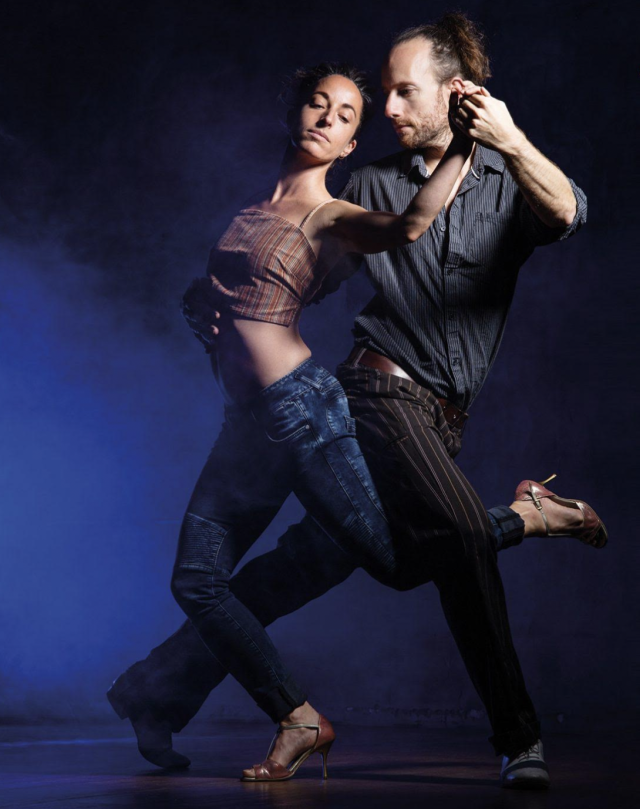 Der zweite Baustein ist die Verbindung von Umarmung und Spielbein. Bei der Tangobewegung erlebst du diese Verbindung intuitiv mit einfachen Übungen, die sich direkt in den Tanz übertragen lassen. Auf dieser Grundlage kkönnen wir anschließend auch sehr spezielle Bewegungen sicher und fließend kommunizieren und tanzen.